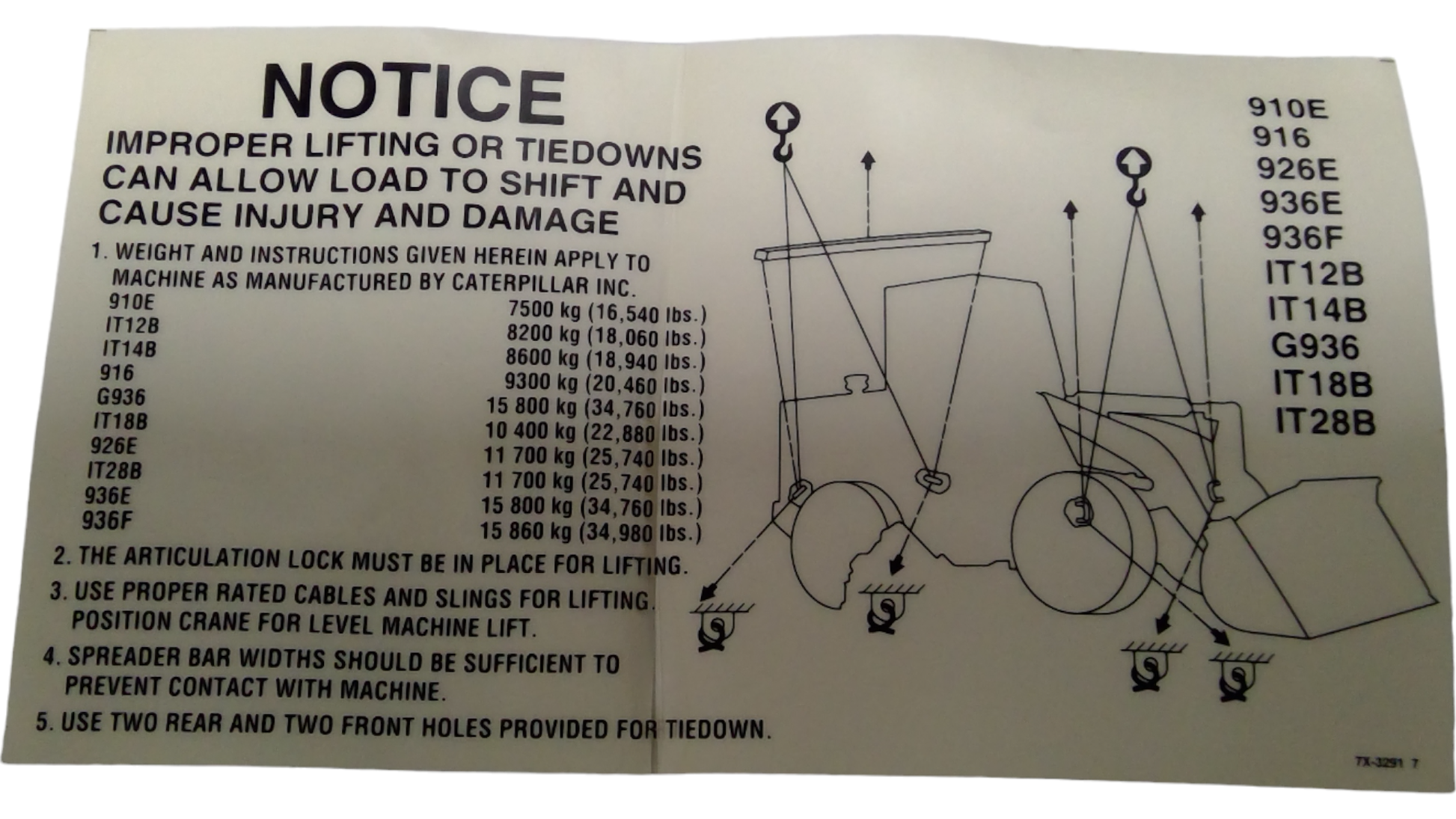 New OEM Genuine Caterpillar, Film Notice - Part # 7X3291