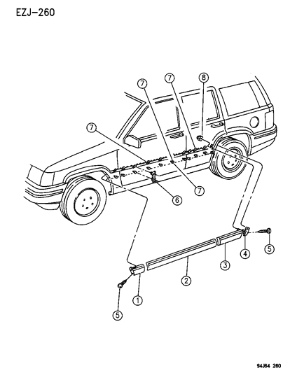 New 1993-1996 Fits Chrysler Grand Cherokee Retainer-Anti Slide Scuff Moulding - Part # 55294948