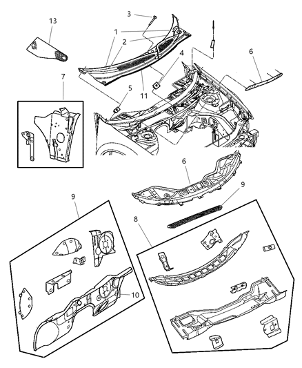 New 2003-2006 Fits Chrysler Sebring Cowl Panel-Cowl - Part # 4805490AD